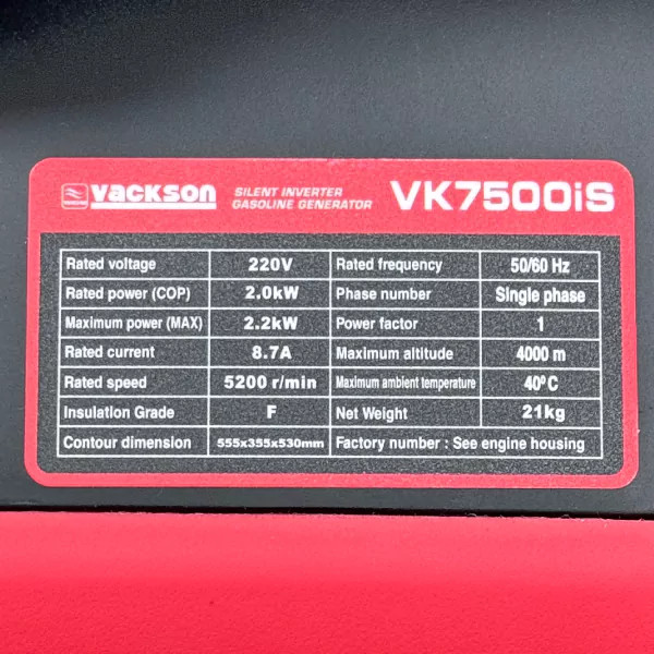 مشخصات فنی موتور برق اینورتری واکسون مدل VK7500ISE